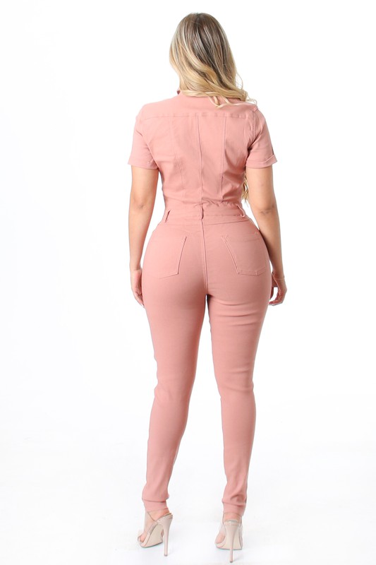 IFJ30863PNK LADIES JEANS SHORT SLEEVE BOTTON UP SMART CASUAL JUMPSUITS